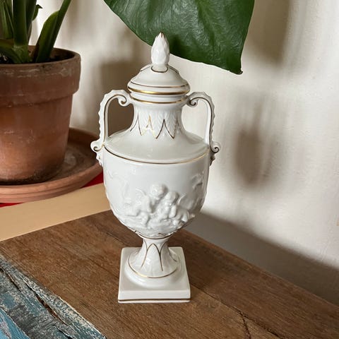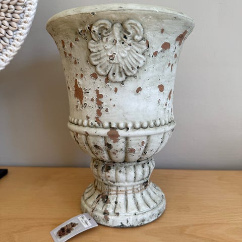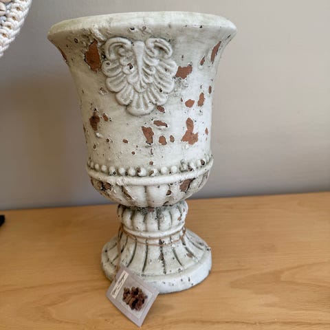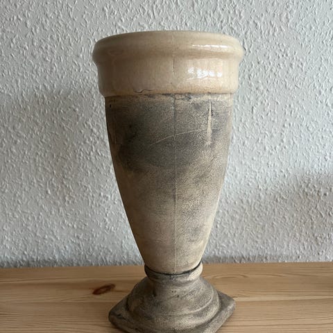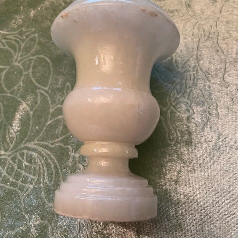 Smuk gammel alabast vase. Vasen har et lille hul i bunden så den kan ikke holde vand og er kun til grene, tørrede blomster eller bare til pynt som den er.