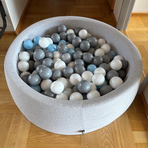 Boldbassin med en masse bolde. Et par enkelte pletter som godt kan vaskes / tørres af. Fra ikke ryger hjem. Ingen huller