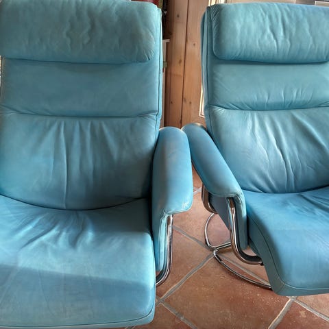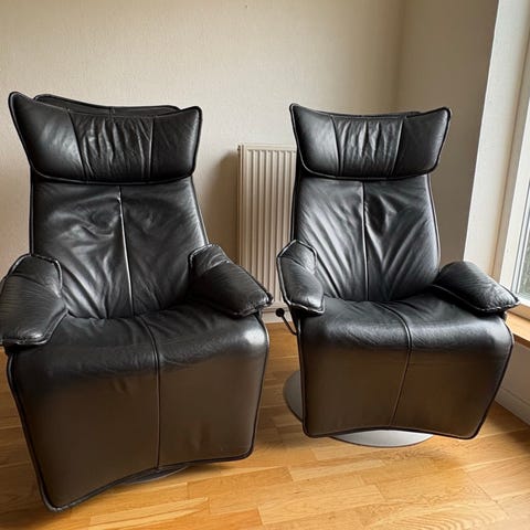 2 meget velholdte IMG-lænestole sælges. De er 11 år gamle. Der er ingen pletter i læderet og de mekaniske dele fungerer perfekt. Sælges som sæt. De står i Frederikshavn og skal hentes der.