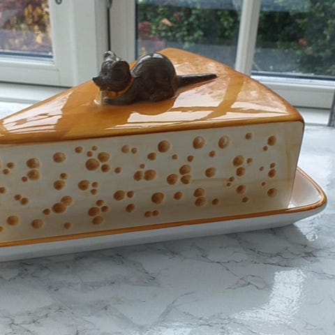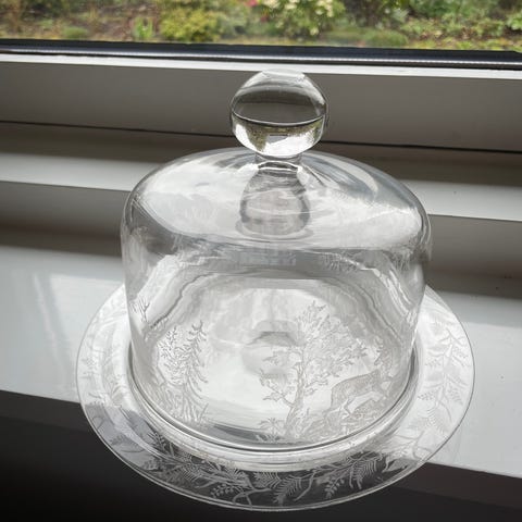 Stor Antik Rörstrand osteklokke m træfad oste fad bord