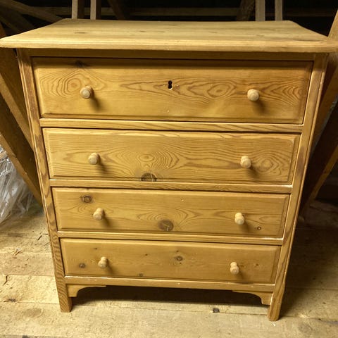 Kommode antik, købt i Norge. Furu. Mål: bredde 105 cm. Højde 77 cm. Dybde 53 cm.
