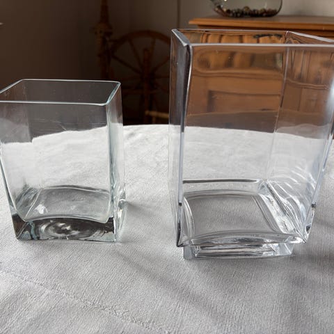 IKEA glasvase sæt i klart glas. Cylindriske vaser i to størrelser med tyk glasbund, velegnet til bloklys, fyrfadslys eller som dekorative beholdere til f.eks. blomster og grene. Enkel, gennemsigtig udformning der passer ind i forskellige indretningsstile og kan bruges både alene eller som del af en dekoration på bord, reol eller vindueskarm.