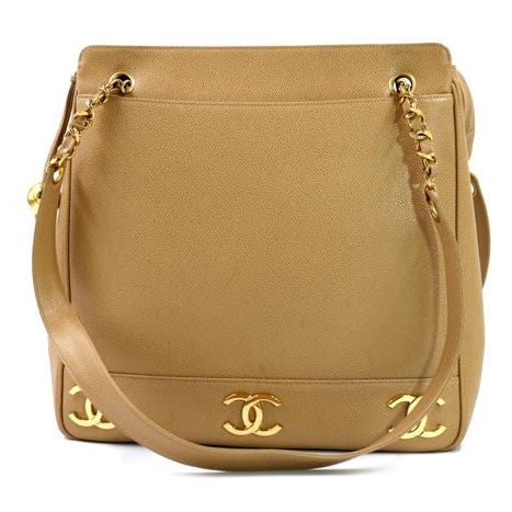 Super smuk og velholdt, stor skuldertaske fra Chanel, i off White caviar, med sølv hardware.