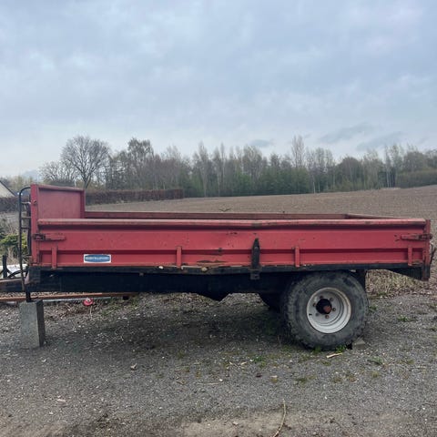 Der er støddæmper på tippe delen så ikke den tipper så hurtig op og ned og der er monteret skridsikker plader i bunden så man kan køre en havetraktor op på den og det er den rigtig god til. Længde 260 cm og 160 cm bred. Der er nye bremser på og nye håndbremsekabler. + Omreg.