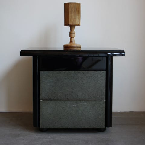 Vintage art deco hvide metal glas med forgyldt stel - sengeborde/natbord/sidebord med patina.