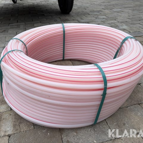 Pex rør til gulvvarme eller til forskellige tekniske og praktiske formål, eksempelvis vand- eller kabelføring, afhængigt af dimensioner og godkendelser. Slangen kan tilpasses ved afkortning efter behov.