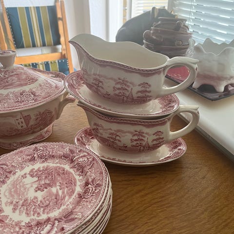 Arabia spisestel hvidt porcelæn med gylden dekoration