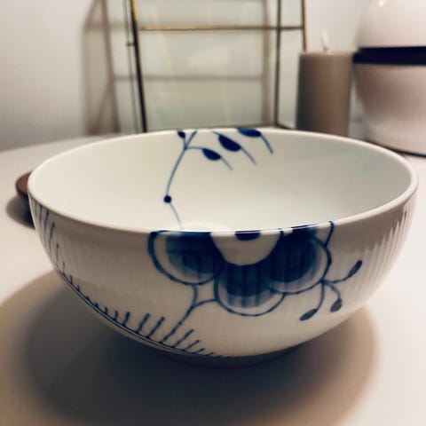 Musselmalet Riflet skål i porcelæn fra Royal Copenhagen. Den enkle, hvide baggrund får modspil af det detaljerige Musselmalet Riflet på denne elegant skål. Det tidløse mønster gør den til et smukt, dekorativt element på bordet og i alle rummene i hjemmet. Royal Copenhagens første stel fra 1775, Musselmalet Riflet, fortryller med sin klassiske alsidighed og er stadig i dag evigt tidløst. Stellets elegante mønster understreger porcelænets fine formsprog og håndværket bag hver enkelt stykke porcelæn. Musselmalet Riflet er det perfekte udgangspunkt for en personlig samling af Royal Copenhagen.
