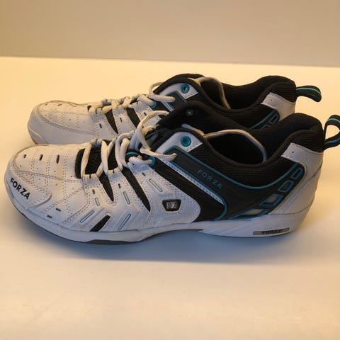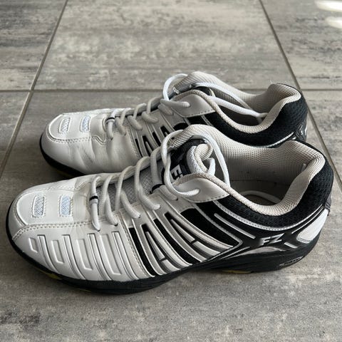 Adidas CourtJam Control tennissko i størrelse 45. Skoene er hvide med sorte Adidas-striber og hvid sål. Overdelen er i åndbart mesh-materiale med snørelukning. Brugt meget få gange på grus, derfor den røde farve. Sælges grundet pasform. Afhentes i Brøndby eller på Østerbro.