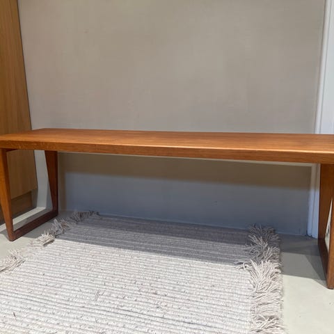 Består af egetræsbænk med slædeben samt fritstående skuffemodul.