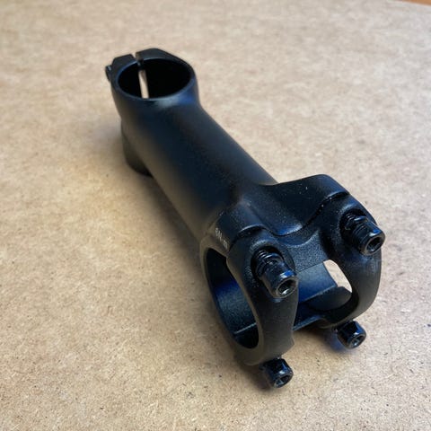 Frempind til cykel i metal, sølvfarvet. Modellen er en klassisk quill-frempind til montering i forgaflen. Velegnet til styr med rund klemme. Frempinden har justerbar vinkel via bolt i toppen. Materiale i metal med delvist patineret/korroderet overflade nederst på skaftet. Egnet som reservedel eller til udskiftning på ældre cykler, hvor denne type frempind anvendes. Justerbare