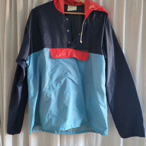 Vintage 90s Colorblock Raincoat – Light blue, Purple & Navy