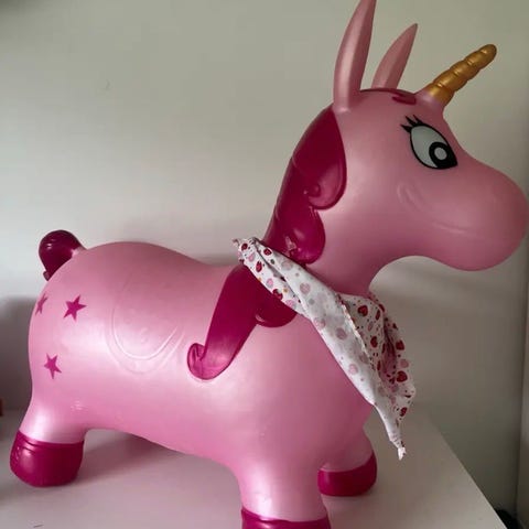 Tysion er en oppustelig hoppedrage, som de små kan hoppe rundt på både inde og ude. Pustes nemt op med en håndpumpe. Med tørklæde, som kan tages af og på. Siddehøjde ca. 23 cm. Maks. vægt 50 kg.