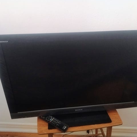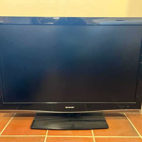 Små overfladiske ridser på skærmen. Virker som den skal. Ikke smart TV. Med fod, men uden fjernbetjening.