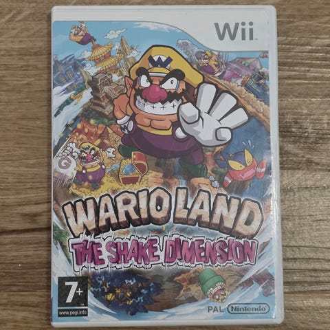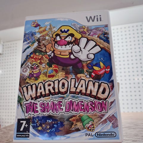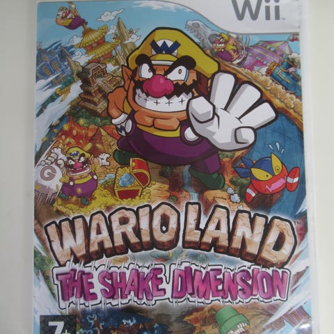 Nintendo Wario Land The Shake Dimension Nintendo Wii spil. Action- og platformspil til Nintendo Wii, hvor spilleren styrer figuren Wario gennem forskellige baner med brug af Wii-fjernbetjeningen. Spillet er på disk og leveres i Wii-cover. Egnet til aldersgruppen 7 år og opefter ifølge PEGI-mærkning. Understøtter PAL-region (europæisk udgave).
