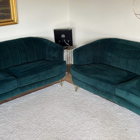 2 og 3 personers sofaer i lysgrå blødt alcantar stof.