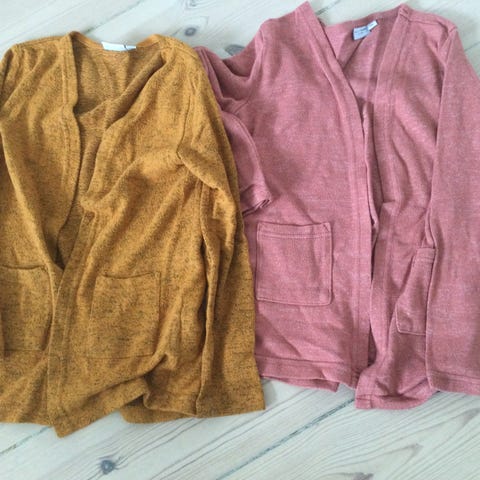 Cardigan, Trøjer fra Basic Needs, str. 122 - 2 pæne trøjer (1 gul & 1 grå) sælges samlet for 50 kr.