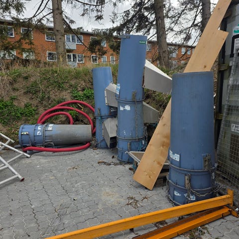 Geda affaldsskakt i plast i grå farve. Segmenterne er forsynet med kæder til sammenkobling, så de kan bruges som lodret affaldsskakt fra etager ned til container eller vogn på byggeplads. Velegnet til borttransport af byggeaffald og materialer fra højere niveauer. Egnet til professionel brug på bygge- og renoveringsopgaver.