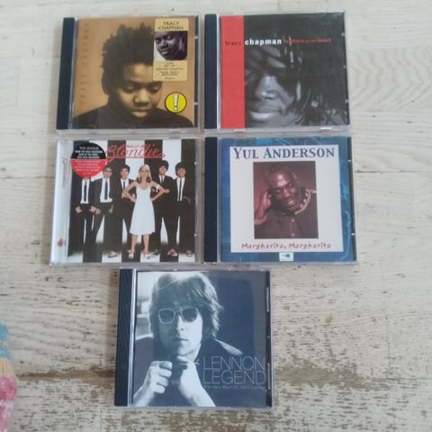 Diverse kunstnere cd-samling med 5 musik-cd’er inden for primært rock og blues. Forskellige kunstnere og albums, alle i standard plastikcover med tilhørende coverart og tracklister på bagsiden. Velegnet til dig, der ønsker en lille samling blandede cd’er med forskellig musik fra flere kunstnere.