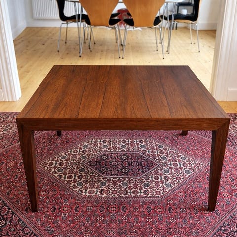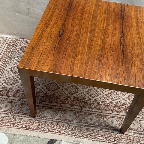 Lille sofabord/lampebord i Teakbejdset bøgetræ med kølleben.