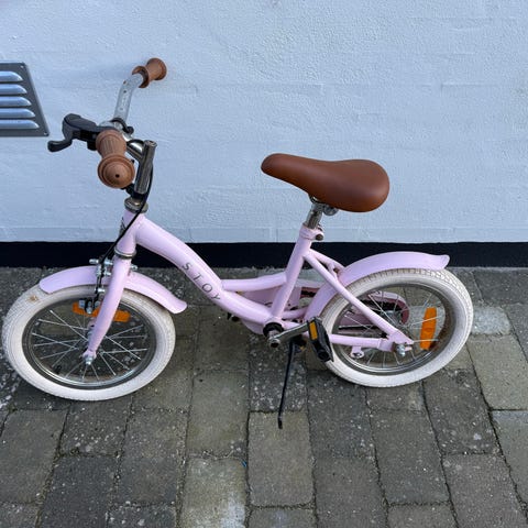 Stoy Vintage cykel 12” i candy pink. Meget flot pigecykel næsten som ny og kun få brugsspor. Den har stået indenfor og uden synlig rust.