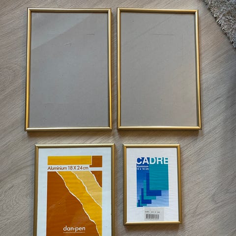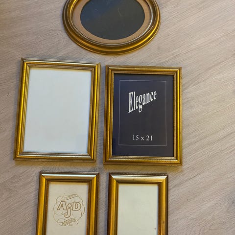 Rammerne er i guldfarvet design med dekoreret kant og glas foran.