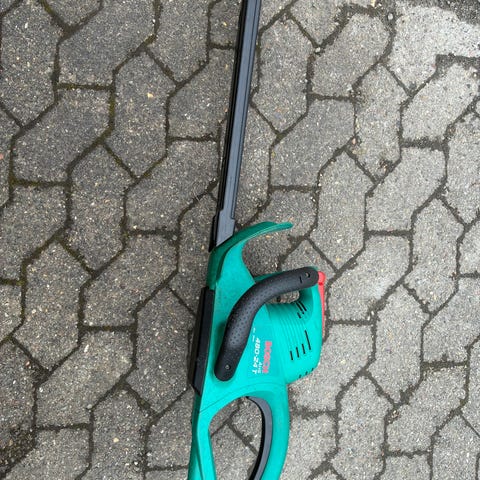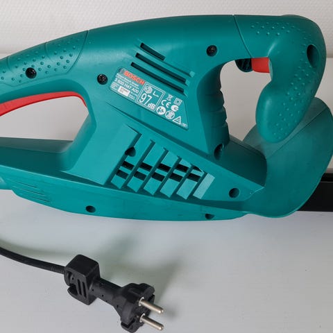 Lille, let og stærk hækkeklipper med 55cm sværd og kan klippe grene op til 16mm. 450W motor, fejler intet. Gør det den skal selvom den er brugt, er bare overskud fra lageret.