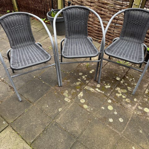 Stolen er velholdte, og der medfølger velholdt hynde. Dog mangler dutterne under stolens “fødder”.