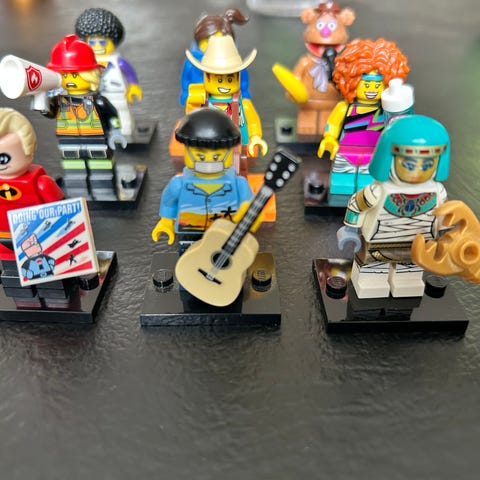 Denne forseglede kasse indeholder 36 blisterpakker (3 komplette CMF-sæt med 12 minifigurer), med flere sjældne minifigurer inklusive: