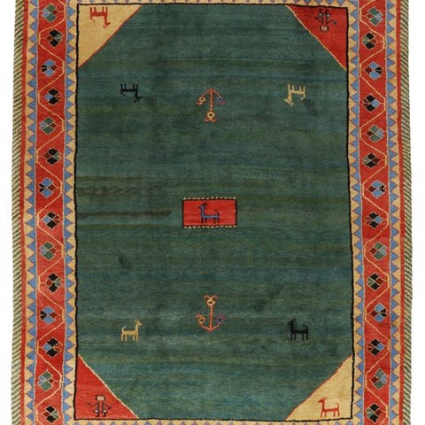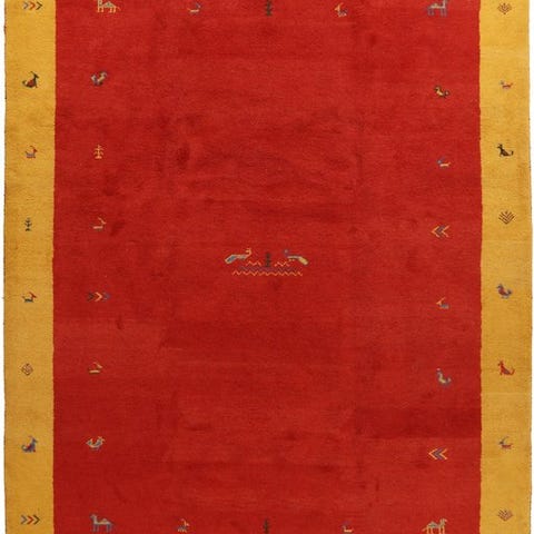 Indien moderne Gabbeh tæppe, model Modern Indo Gabbeh, størrelse 181 x 122 cm, håndvævet af uld på bomuld, farverne gul og rød, vægt ca. 12 kg, i god stand. Klik på den blå "gå til varen" knap, for at købe eller byde på denne vare. Den samlede pris vil blive vist inden du afgiver dit bud.
