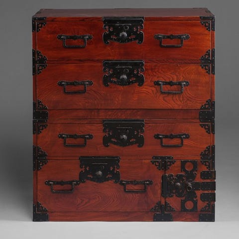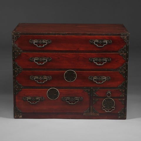 Originalt Meiji-periodens lakkeret træ bogudstillingsskab med forgyldning, højdemål 106,8 cm, bredde 73,7 cm, dybde 33,8 cm, i god stand; et certifikat om ægthed medfølger ved forsendelse. Klik på den blå "gå til varen" knap, for at købe eller byde på denne vare. Den samlede pris vil blive vist inden du afgiver dit bud.