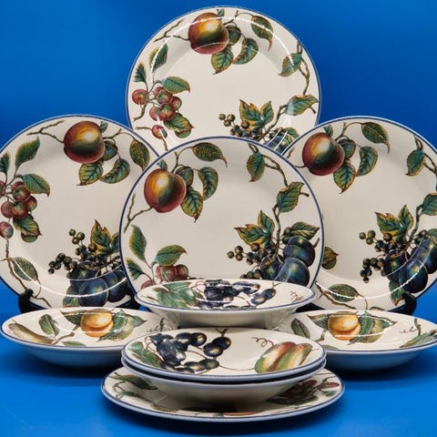 Et ikonisk stel af tallerkener signeret Richard Ginori, fremstillet i den historiske manufaktur i Mondovì.