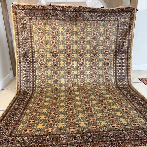 Farahan-tæppe fra Pakistan, uld på bomuld, 302 cm × 246 cm, i meget god stand, fremstillet i det 21. århundrede, professionelt rengjort. Klik på den blå "gå til varen" knap, for at købe eller byde på denne vare. Den samlede pris vil blive vist inden du afgiver dit bud.