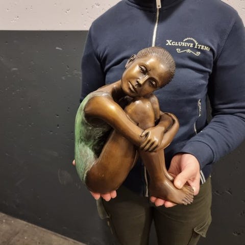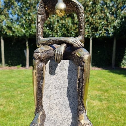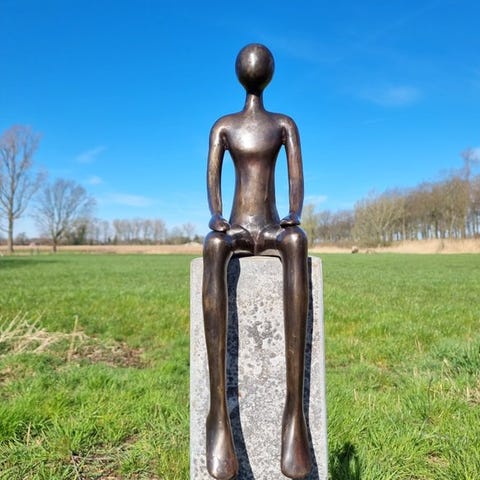 Denne bronzeskulptur af en tænksom mand. En sørgende mand. Dette skulptur indeholder mange følelser og udstråler en vis styrke. Dimensionerne af denne bronzeskulptur er som følger (+/-):
