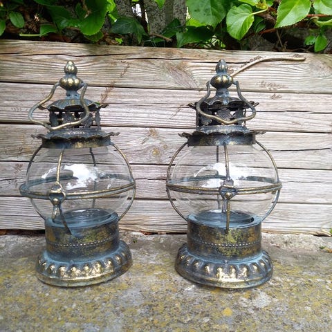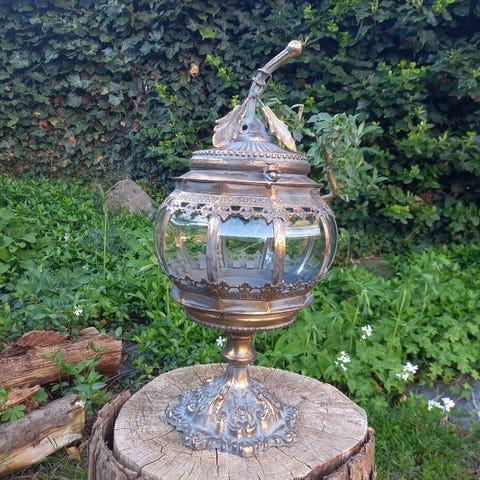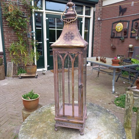 Stor lantern i metal og glas fra Europa, anslået periode 2020+, i fremragende stand med minimalt brug, mål 27 cm bred, 52 cm høj og 17 cm dyb, i funktion. Klik på den blå "gå til varen" knap, for at købe eller byde på denne vare. Den samlede pris vil blive vist inden du afgiver dit bud.