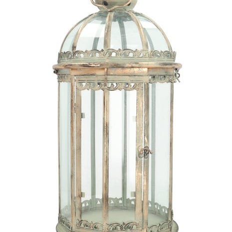 Smuk stor metalslanterne. Giver et smukt udtryk af naturlig ro og ægthed. Smukt udførte detaljer med grå nuancer. Dimensionerne er som følger: