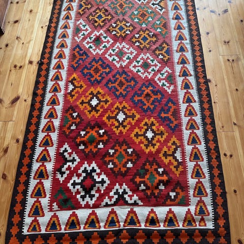 Oprindelse Moldova Moldavie antik kilim tæppe, håndvævet i uld på uld, ca. 1970, mål 172 × 112 cm, flerfarvet, professionelt renset og generelt i god stand med aldringstegn. Klik på den blå "gå til varen" knap, for at købe eller byde på denne vare. Den samlede pris vil blive vist inden du afgiver dit bud.