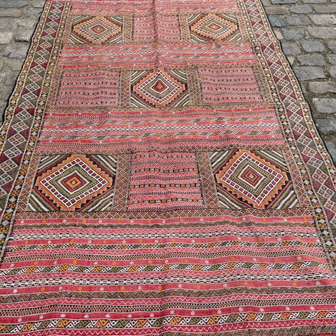 Oprindelse: Tyrkiet; håndvævet Konya Turkish Obruk Kelim tæppe, 2,78 m × 2,00 m, uld på bomuld, flerfarvet, midten af det 20. århundrede, ca. 22 kg, i meget god stand. Klik på den blå "gå til varen" knap, for at købe eller byde på denne vare. Den samlede pris vil blive vist inden du afgiver dit bud.