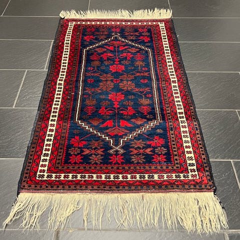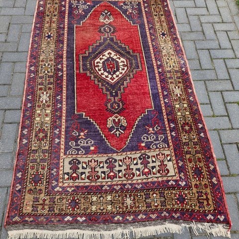 Tilbydes er et håndknyttet orientalsk tæppe fra provinsen Konya (Her: Turkish Kelim).