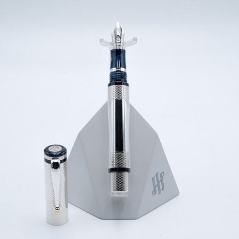 Fyldepenet Ruble “Рубль” fra Montegrappa er et karakteristisk skriveinstrument, der er inspireret af elementer forbundet med Rusland. Kroppen er udformet i dyb blå akrylharpiks og beriget med elegante sølvdetaljer.