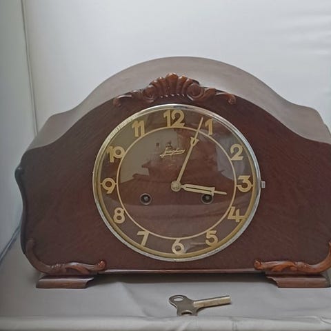Uret er af særdeles god kvalitet og et Junghans Pfeilkreuz-urværk. Uret er rengjort, og det løber smukt; det er originalt og passer i denne klokke, og hvor nødvendigt let olieet og vaterret justeret, og har et tre-tonet bim-bam slag, som hører hvert halve og hele time.