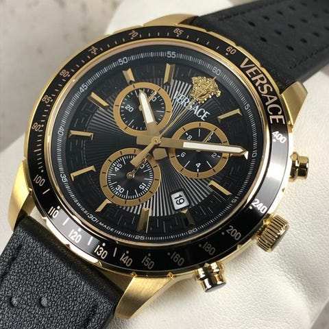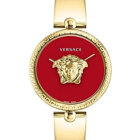 Versace Palazzo Empire VECQ01120 indfanger essensen af italiensk luksus med sit tydelige Medusa-centrerede design. Den elegante 34 mm guldbelagte rustfrit-stålskasse omkranser en raffineret sort guilloché skive, hvor det ikoniske hævede Medusa-hoved står i centrum — et signaturmærke for House of Versace og et udsagn om modig sofistikering.