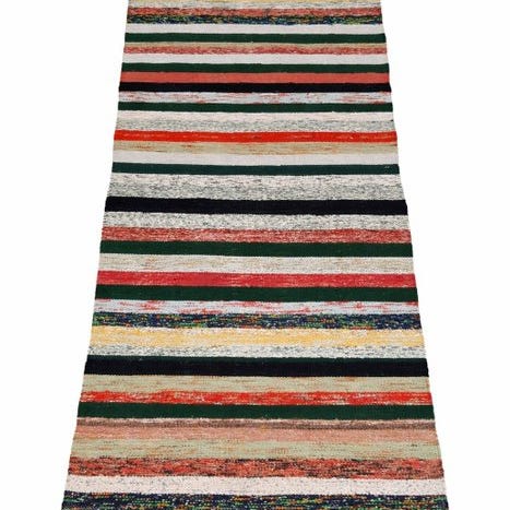 Kilim'et har en slående komposition af flerfarvede vandrette striber, hver enkelt omhyggeligt vævet for at skabe en balanceret og harmonisk visuel rytme. Stribede designs i tyrkiske kilims er dybt forankrede i stammesymbolik og repræsenterer ofte kontinuitet, beskyttelse og væverens kulturelle identitet.