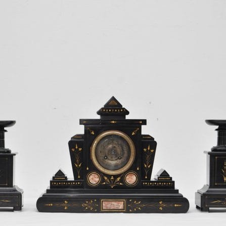 Pendulur - Antik Messing, Marmor, Råzink - 1850-1900 - Mantelur med skulptur
