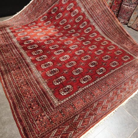 Håndvævet afghansk Orientteppe, model Afghan art deco, uld på uld, størrelse 255 x 242 cm, eksporteret før 2015, i god stand med alders- og brugsspor, med ægthedscertifikat. Klik på den blå "gå til varen" knap, for at købe eller byde på denne vare. Den samlede pris vil blive vist inden du afgiver dit bud.