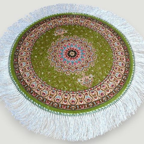 *Til indgangen i vores lager, renset ved et vaskeri specialiseret i håndknyttede tæpper, derefter ikke brugt igen.