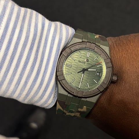 Maurice Lacroix AI2008-00000-V00-0 er en herreur med 41 mm Tide KOTC Special Edition, kasse af genbrugt plast, schweizisk kvartsværk, sort/gul skive, sort gummiband, ubrugt siden 2020, leveres i Maurice Lacroix Tideæsken med uunderskrevet ægtheds certifikat og et separat ægthedscertifikat fra de Horlogemeesters. Klik på den blå "gå til varen" knap, for at købe eller byde på denne vare. Den samlede pris vil blive vist inden du afgiver dit bud.