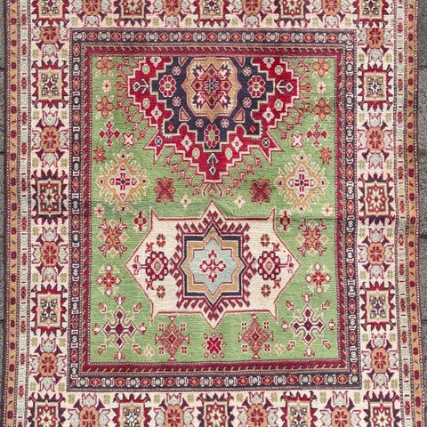 Ulden er af topkvalitet. Dette tæppe er håndknyttet i Afghanistan med uld af høj kvalitet.