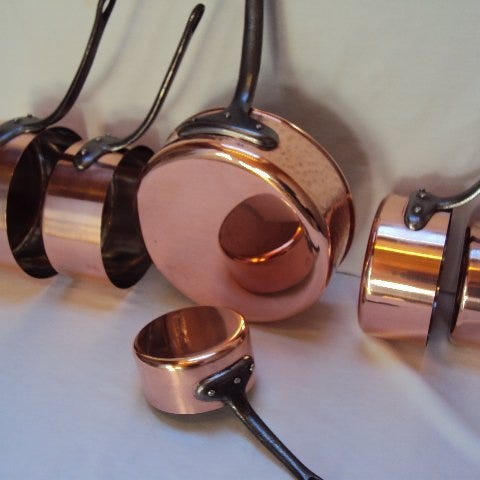 Les cuivres de Faucogney 1 sauteuse avec couvercle 5 casseroles cuivre étain ...
