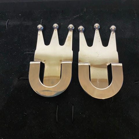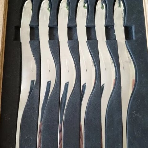 Superb sæt på 12 knivholdere i hundeform, enkel og raffineret model i smuk sølvfarve.